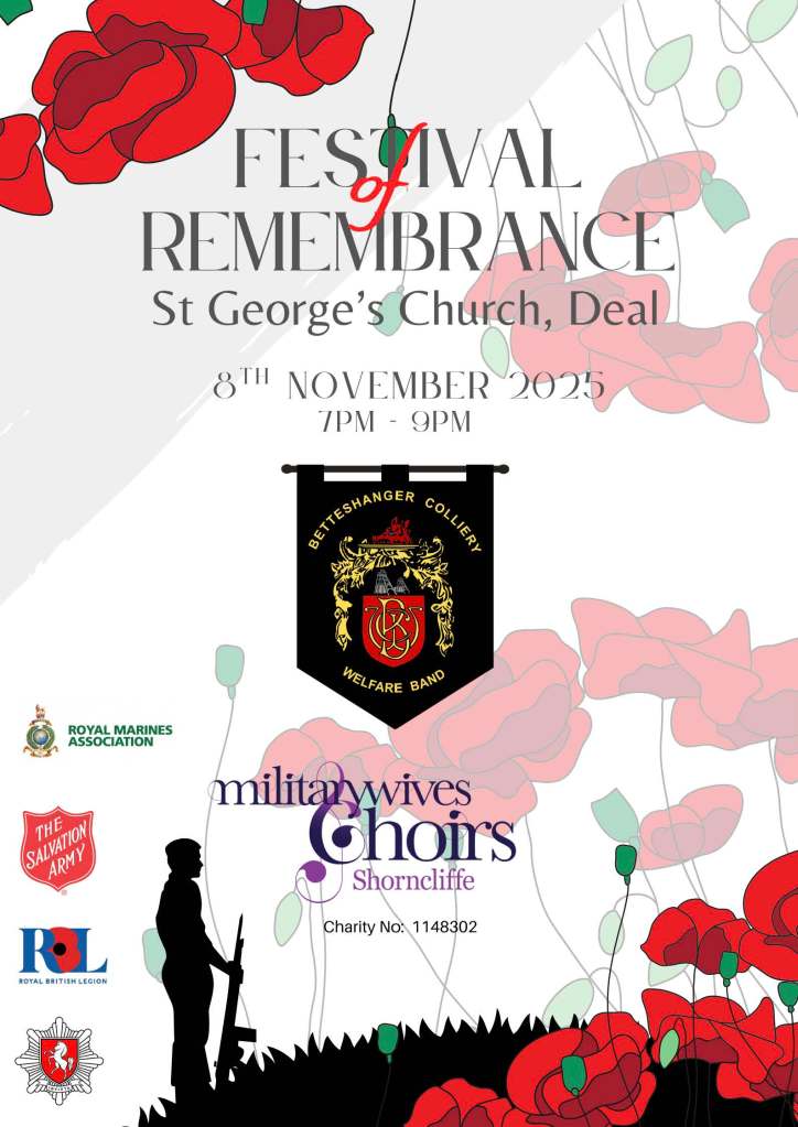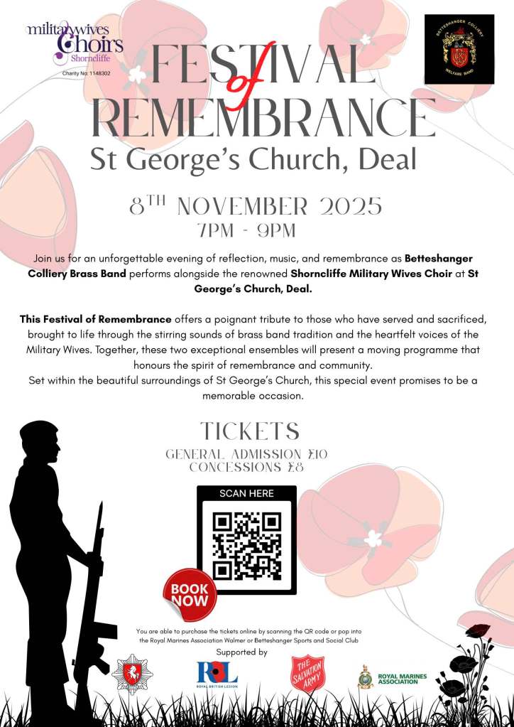 Join us for an unforgettable evening of reflection, music, and remembrance as Betteshanger Colliery Band performs alongside the renowned Shorncliffe Military Wives Choir at St. George’s Church, Deal.