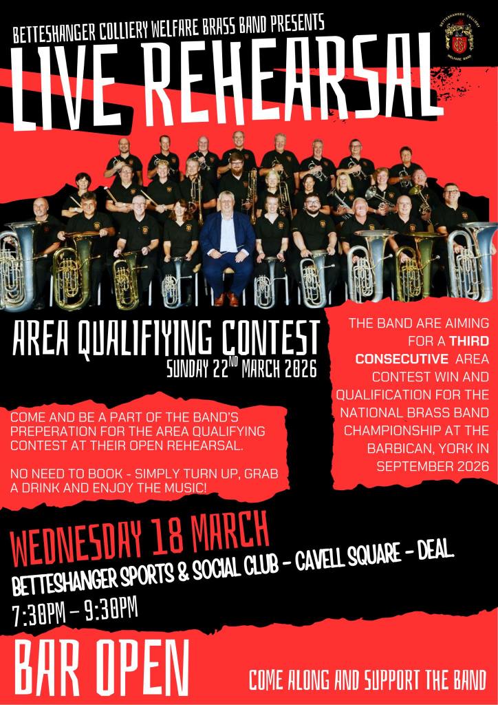 With just two weeks of rehearsals left, Betteshanger Colliery Welfare Band are putting the finishing touches to “Three Haworth Impressions” as we prepare for the Area Qualifying Contest.